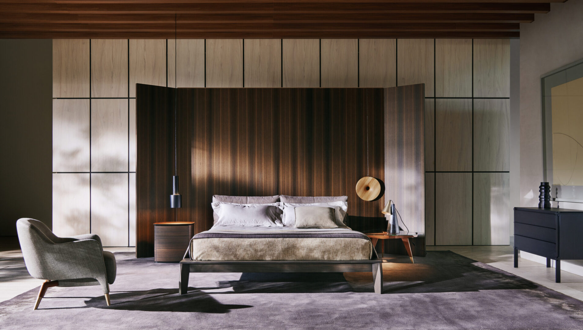 Кровать WISH от итальянской фабрики MOLTENI & CO — воплощение вневременной классики с акцентом на детали и натуральные материалы. Изготовлена из массива дерева (дуб, вяз или эвкалипт) с выбором оттенков: серый, черный, светлый или темный. Минималистичные линии дополнены мягкими подушками для головы из ткани или кожи, гармонично сочетающимися с деревянной конструкцией.