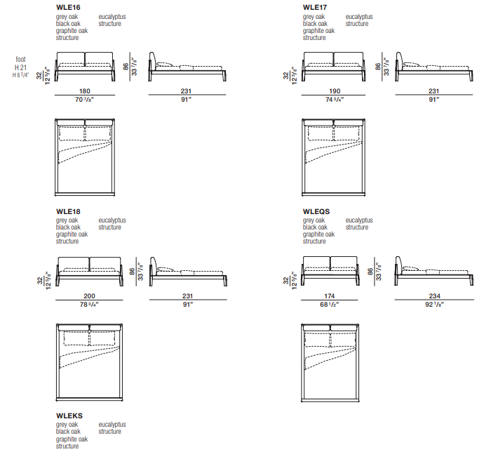 Итальянская мебель славится безупречным качеством материалов, и кровать Wish — не исключение. Для ее создания используются: