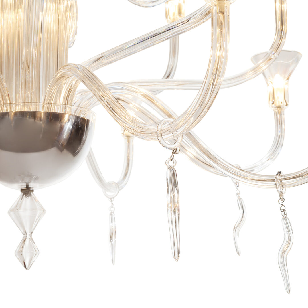 Использование боросиликатного стекла гарантирует не только долговечность и устойчивость к перегреву, но и эффектный внешний вид, который подчеркивает каждый элемент дизайна. Ручная работа мастеров фабрики ABHIKA придает каждой люстре индивидуальность, делая её настоящим произведением искусства.