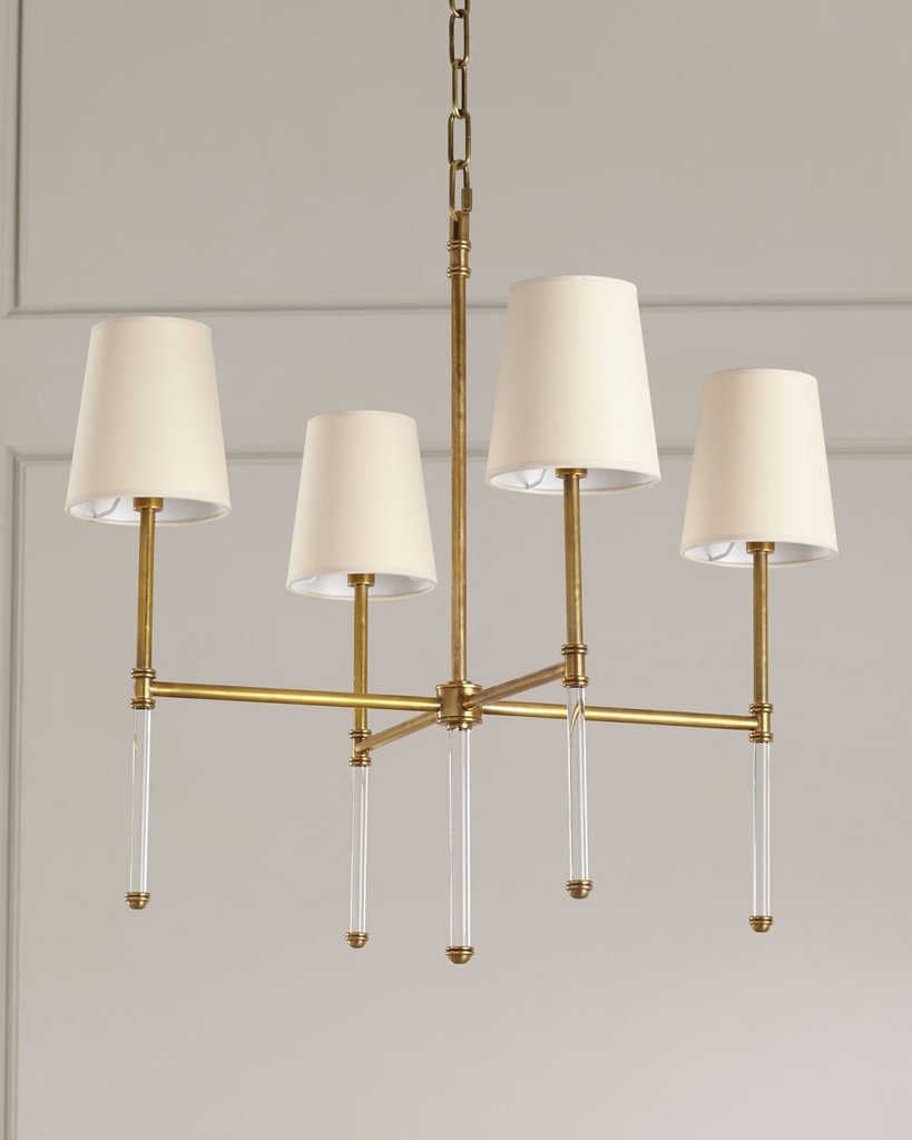 Люстра выполнена в американском стиле с элементами классики, что делает ее универсальным решением для самых разных интерьеров. Ее форма — это дань традициям, переосмысленным через призму современного дизайна. Четыре изящных плафона, расположенные на металлической основе, создают мягкое, но выразительное освещение, подчеркивающее статус владельца.