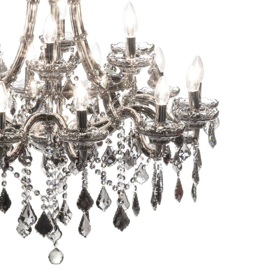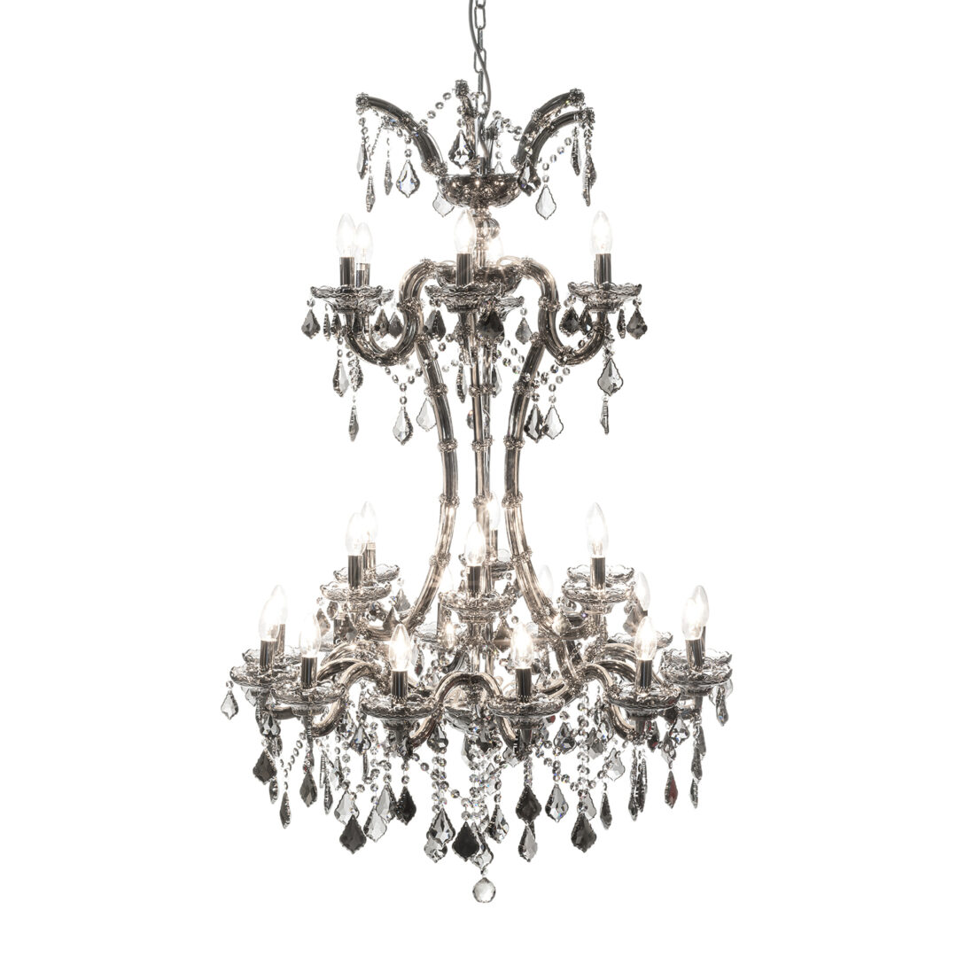 Люстра FLAM2 24 обладает изысканной стеклянной конструкцией, украшенной хрустальными подвесками, которые создают эффектное свечение. Ее размеры H134 D85 делают её идеальной для высоких потолков, а элегантные линии и блеск хрусталя привлекают внимание и становятся центром притяжения в любом интерьере. Представьте, как эта люстра будет выглядеть в вашем доме, освещая вечернюю атмосферу и создавая уют.