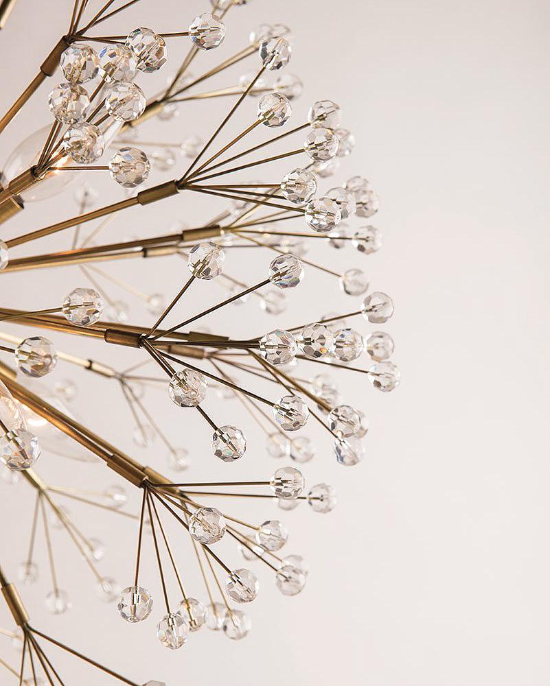 Люстра NORWICH GOLD от фабрики LOUVREHOME (Китай) – современное решение для изысканного интерьера. Её дизайн напоминает одуванчик с золотистыми стеблями и хрустальным шаром, создающим эффект мерцающих звёзд. Изготовлена из металла и стекла, подходит для помещений в современном или американском стиле.