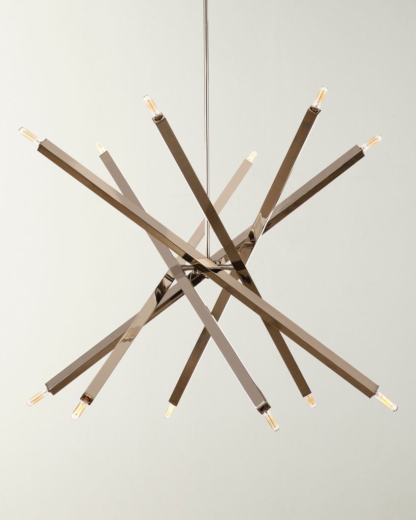Люстра PARIS SILVER от фабрики LOUVREHOME — стильное современное решение для интерьера. Дизайн с 12 светильниками и пересекающимися стержнями в никелевом цвете создает динамичные линии, подчеркивая эстетику пространства.
