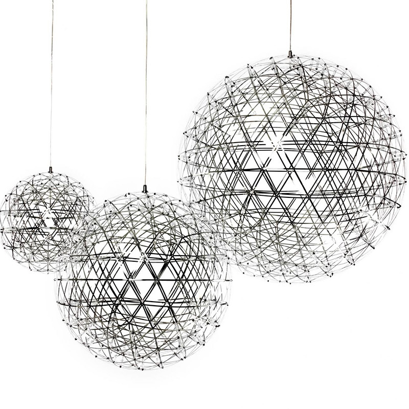 Люстра RAIMOND R43 от голландской фабрики MOOOI — современный дизайн с геометричным плафоном в виде многогранного шара. Выполнена из нержавеющей стали с интегрированными светодиодами (92 x 15 Вт), регулируется по высоте до 400 см. В комплекте диммер для плавной настройки освещения. Авторский дизайн Raimond Puts (2007) сочетает минимализм и технологичность.