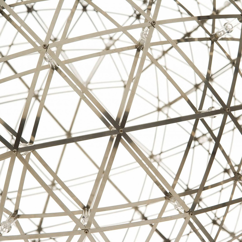 Люстра RAIMOND R61 от голландского бренда MOOOI — это современный светильник премиального качества, созданный дизайнером Raimond Puts. Изготовлена из нержавеющей стали с плафоном в виде многогранного шара, в который встроены 162 светодиода (25 Вт каждый).