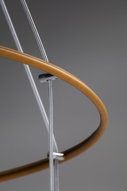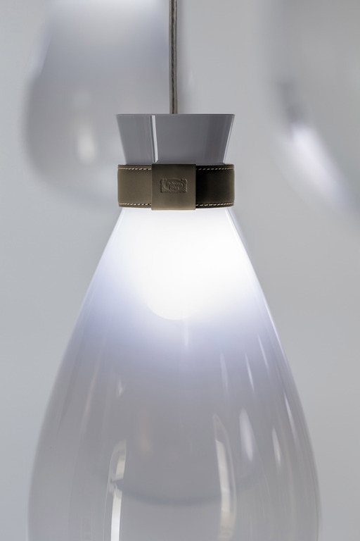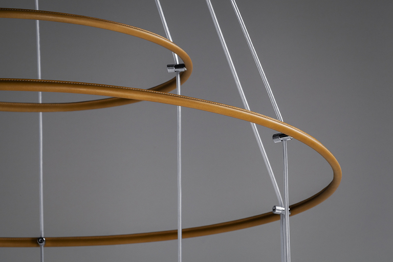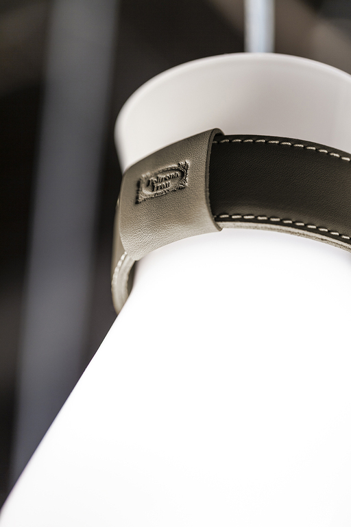 Детали люстры Soffi выполнены с использованием высококачественных материалов. Кожаный ремешок Cuoio Saddle Extra доступен в отделках Camel и Taupe, с аккуратной строчкой и логотипом Poltrona Frau. Металлические элементы из матовой латуни и полированной нержавеющей стали добавляют дополнительный шарм.