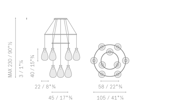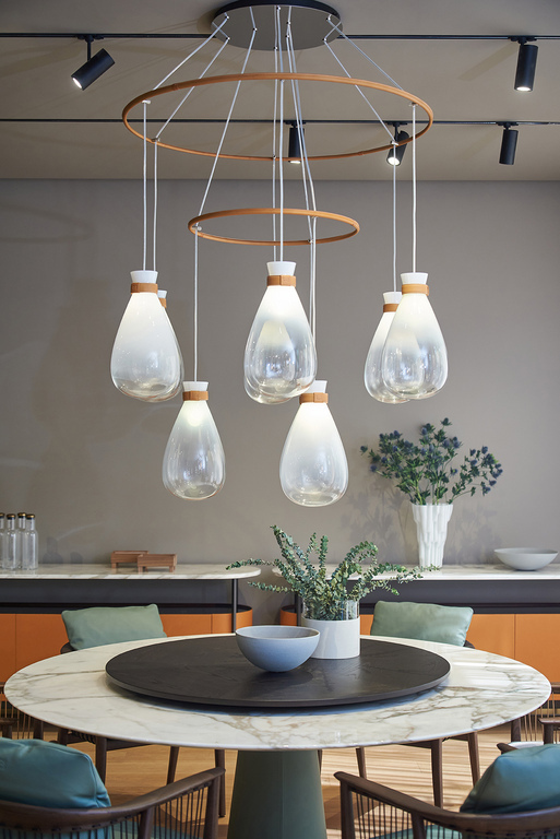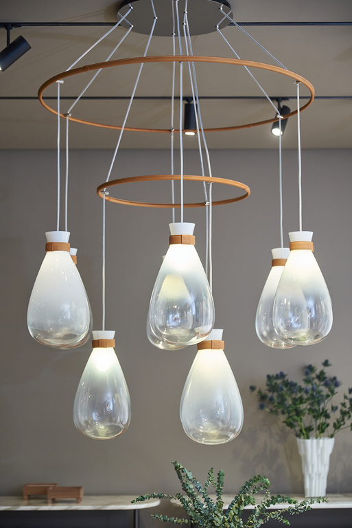 Коллекция Soffi предлагает разнообразие размеров и конфигураций: от одиночных светильников до линейных композиций и групповых решений. Вы можете выбрать между маленькими, средними и большими светильниками, комбинируя их по своему усмотрению. Люстра, состоящая из двух концентрических колец, вмещает до девяти светильников, создавая восхитительный эффект, который станет центром притяжения в вашем интерьере.