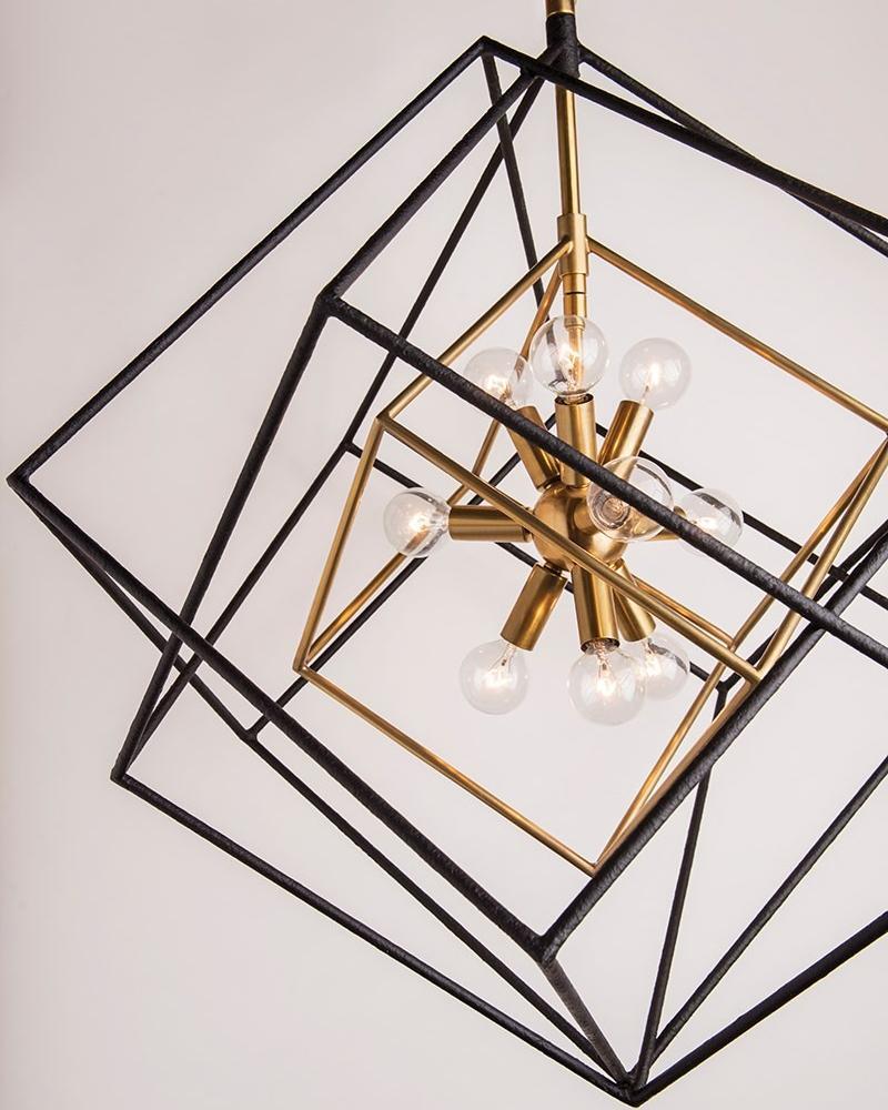Люстра THORSTEN от фабрики LOUVREHOME (Китай) — современное воплощение динамики и стиля. Её конструкция из чёрного железа с золотистой отделкой напоминает застывшие в движении кубики, создавая эффектную игру света и тени.