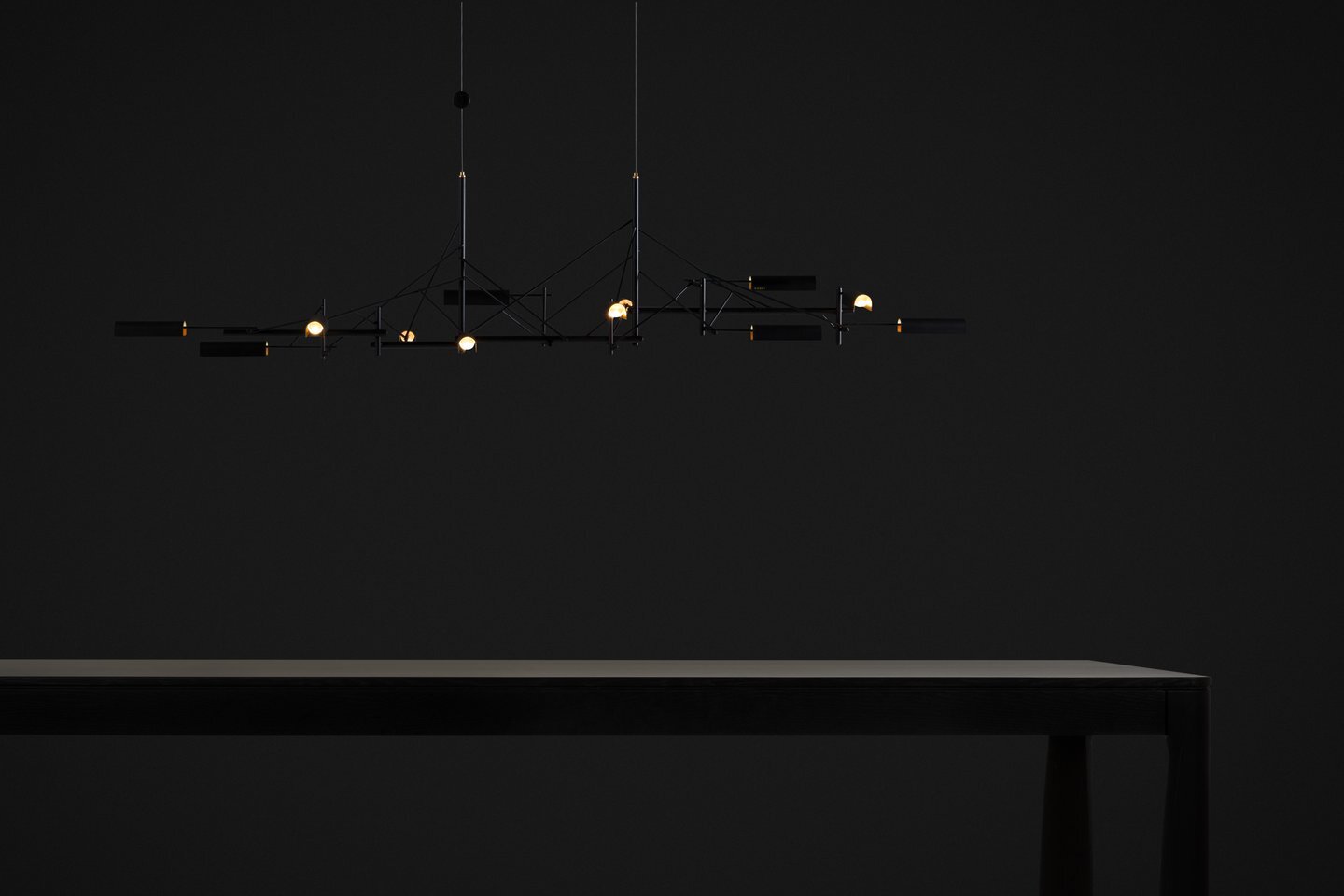 Люстра TINKERING 85 сочетает в себе авангардные линии и классическую элегантность. Ее конструкция из семи ламп, заключенных в черный металлический каркас, создает эффект мерцающего светового скульптурного ансамбля. Каждый элемент тщательно продуман дизайнерами MOOOI, что делает модель узнаваемой и эксклюзивной. Черный цвет основания придает люстре современный шик, позволяя ей органично вписаться как в минималистичные, так и в роскошные интерьеры.