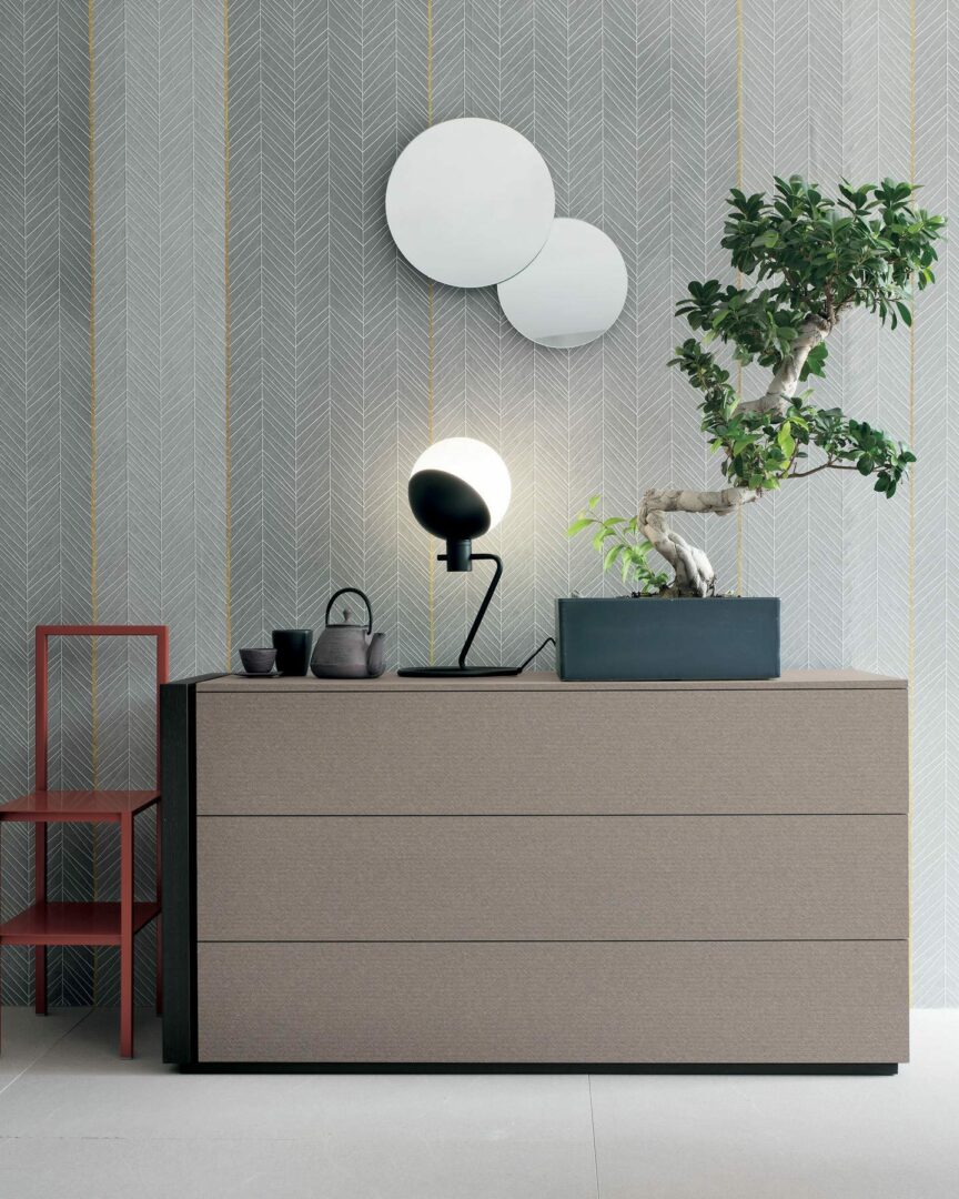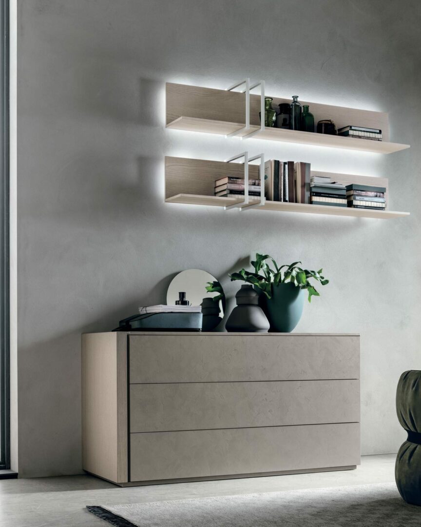 Минималистичные комоды и прикроватные тумбочки с гладкими поверхностями без ручек и контрастными боковинами придают оригинальность и стиль. Каждое изделие создано с любовью к деталям и традиционным итальянским мастерством, что делает их не только функциональными, но и эстетически привлекательными.
