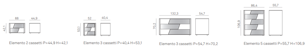 Дизайнеры TOMASELLA создали коллекцию KROSS, в которой сочетаются современные линии и классическая элегантность. Каждая тумбочка и комод в этой коллекции выполнены с учетом всех современных требований к функциональности и эстетике. Например, тумбочка с двумя ящиками (ширина 66 см, глубина 44,9 см, высота 42,1 см) и комод с пятью ящиками (ширина 86,4 см, глубина 55,7 см, высота 106,9 см) не только красивы, но и удобны в использовании.