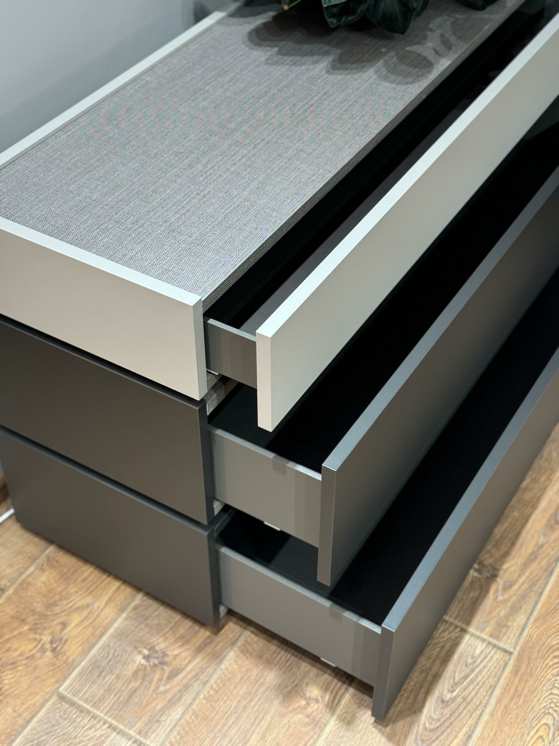 Коллекция REPLAY выделяется изысканными отделками: фактурная и матовая поверхности, каждая из которых придает мебели уникальный и запоминающийся вид. Благодаря разнообразию размеров вы легко сможете интегрировать эти шикарные предметы в ваше пространство, независимо от его площади. Форма и линии обеспечивают гармонию, а тонкий баланс модерна и классики делают REPLAY универсальным решением для спальни.