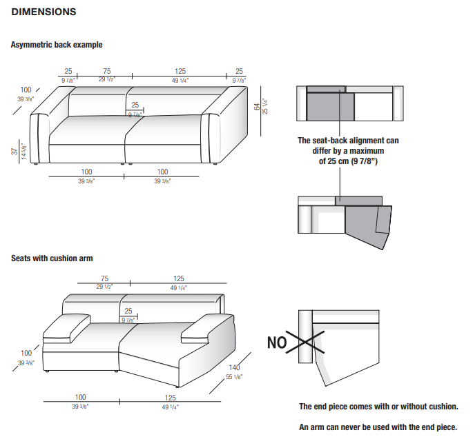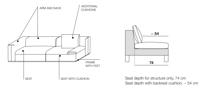 Выбирайте сиденья и спинки разных размеров для симметричных или асимметричных композиций, дополняя их декоративными подушками и тканями в монохроме или контрастных оттенках. Итальянское качество и продуманный дизайн позволяют создать идеальную конфигурацию под любые потребности.