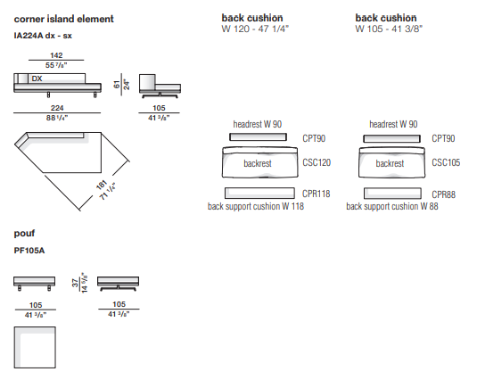 Модульная система позволяет трансформировать композицию: отдельные элементы можно использовать как шезлонги, пуфы или самостоятельные предметы мебели. Итальянское качество гарантирует долговечность и безупречную эстетику.