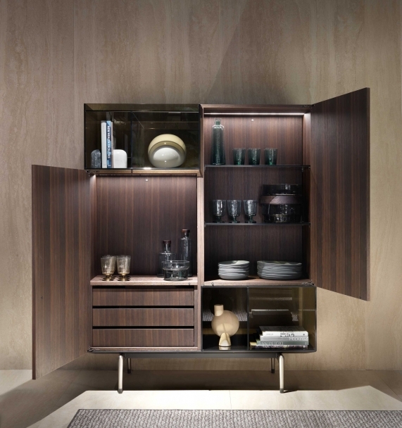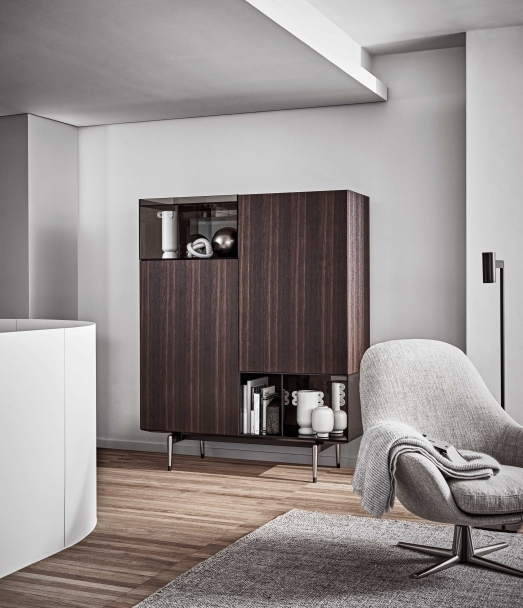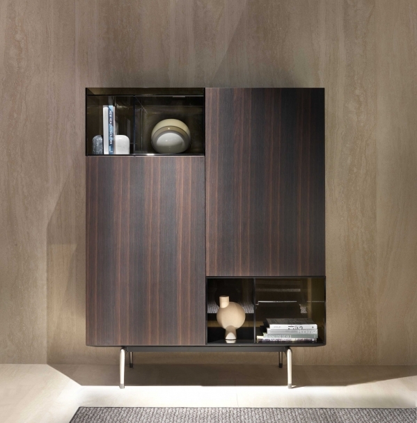 Модульный шкаф JEREMY от итальянской фабрики FLEXFORM — это сочетание элегантности и функциональности. Чистые линии, гармоничное чередование открытых и закрытых секций, а также контраст материалов создают стильный и практичный предмет интерьера. Доступен в различных вариантах отделки: терракотовый дуб, глянцевый лак белого, серого или черного цвета, а также комбинации стекла и дерева. Изящные литые алюминиевые ножки дополняют дизайн. Идеально подходит для гостиной, прихожей или зонирования пространства.