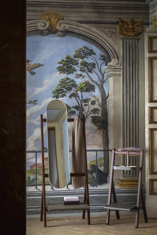Зеркало REN не только украшает пространство, но и практично: вешалка для одежды с овальным зеркалом и крючками, настенная версия с планкой Canaletto и круглым зеркалом, а также туалетный столик с подъемной столешницей. Каждое изделие создаёт уникальную атмосферу уюта и стиля.