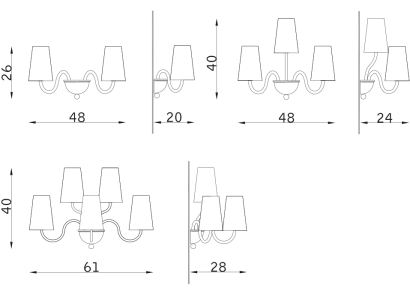 Размеры варьируются от 48×26×20 см (2 лампы E14) до 61×40×28 см (5 ламп E14). Идеальный выбор для создания уютной атмосферы в интерьерах премиум-класса. Произведено в Италии с вниманием к деталям.