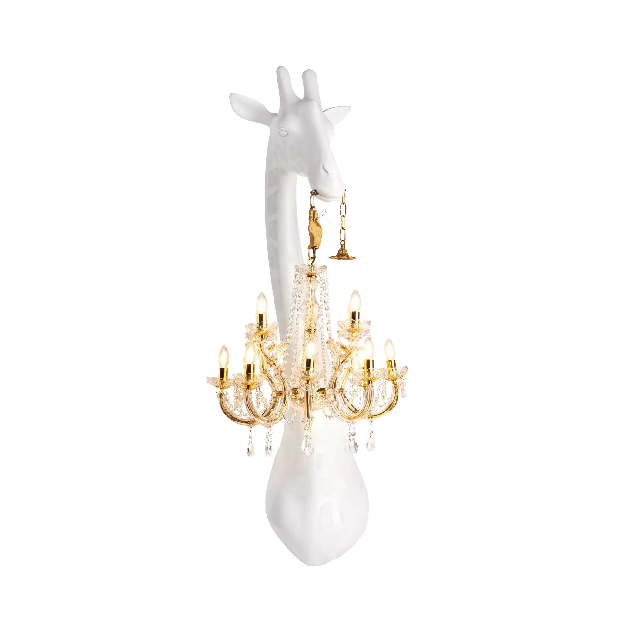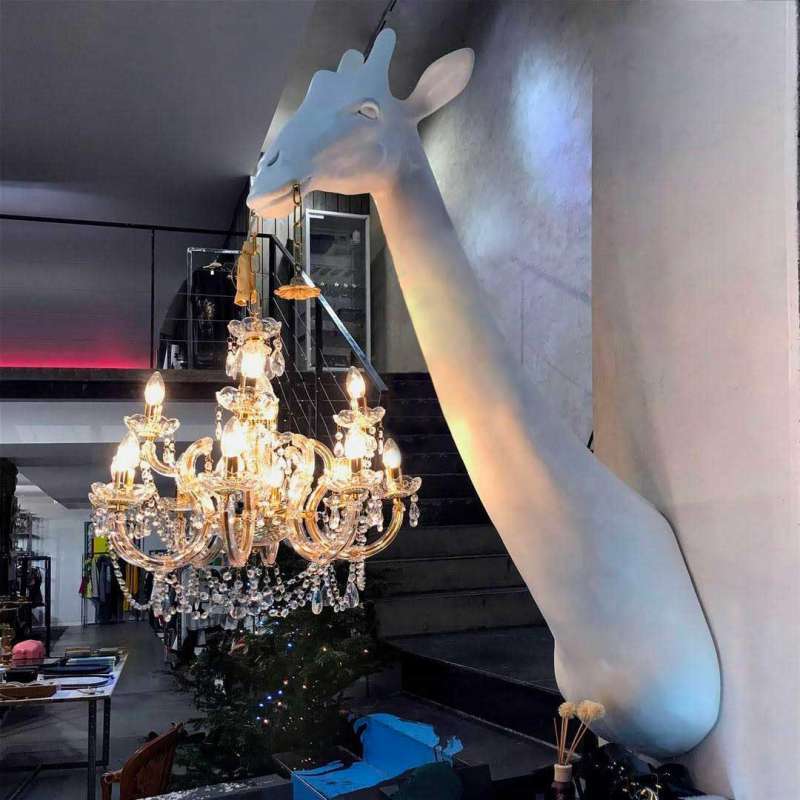 Настенная лампа GIRAFFE IN LOVE от итальянской фабрики QEEBOO — оригинальный дизайнерский светильник, созданный Marcantonio. Вдохновленный игривыми формами, он изображает шею жирафа, держащего классическую люстру в стиле Marie-Thérèse. Идеально подходит для добавления иронии и легкости в интерьер.