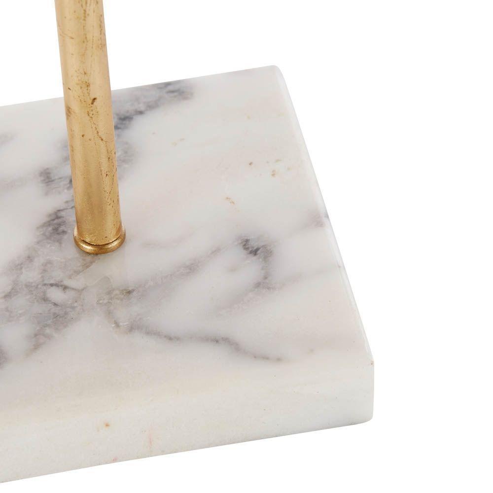 Лампа ALANA сочетает в себе элегантность традиционных форм и лаконичность современных тенденций. Ее силуэт, высотой 64 см, идеально впишется в кабинет, гостиную или будуар, добавляя помещению нотки респектабельности. Основание из натурального мрамора придает устойчивость и благородный блеск, а металлические и деревянные элементы завершают композицию, создавая визуальную гармонию.