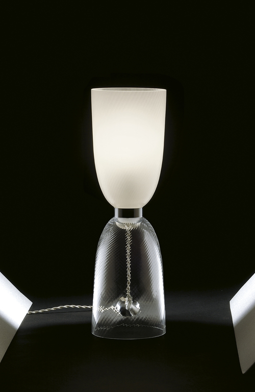 Настольная лампа Alma, созданная мастерами-стеклодувами на острове Мурано, является воплощением итальянского искусства и элегантности. Изготовленная вручную, она представляет собой уникальную световую скульптуру с двумя перекрывающимися колоколами, создающими эффект «песочных часов». Каждый экземпляр выполнен из прозрачного ребристого стекла, что придает лампе особую текстуру и шарм.