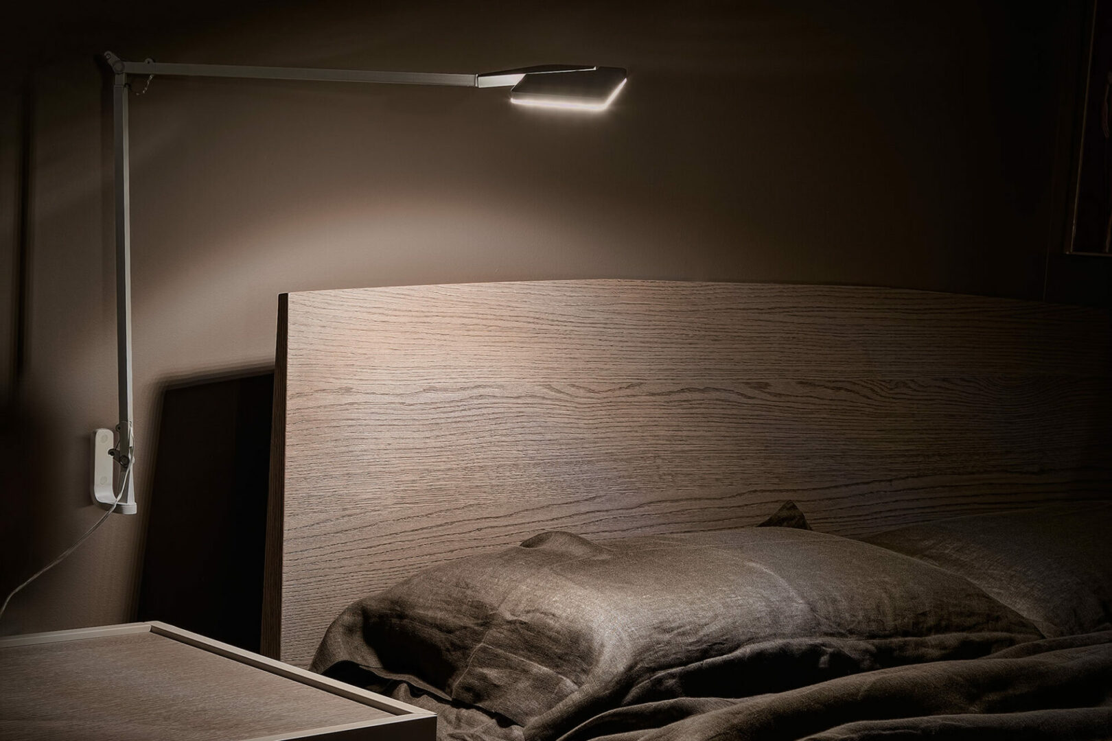 Лампа оснащена кнопкой регулировки интенсивности света с пятью уровнями, а рассеивающий экран из акрила с сатиновым покрытием создает комфортное освещение.