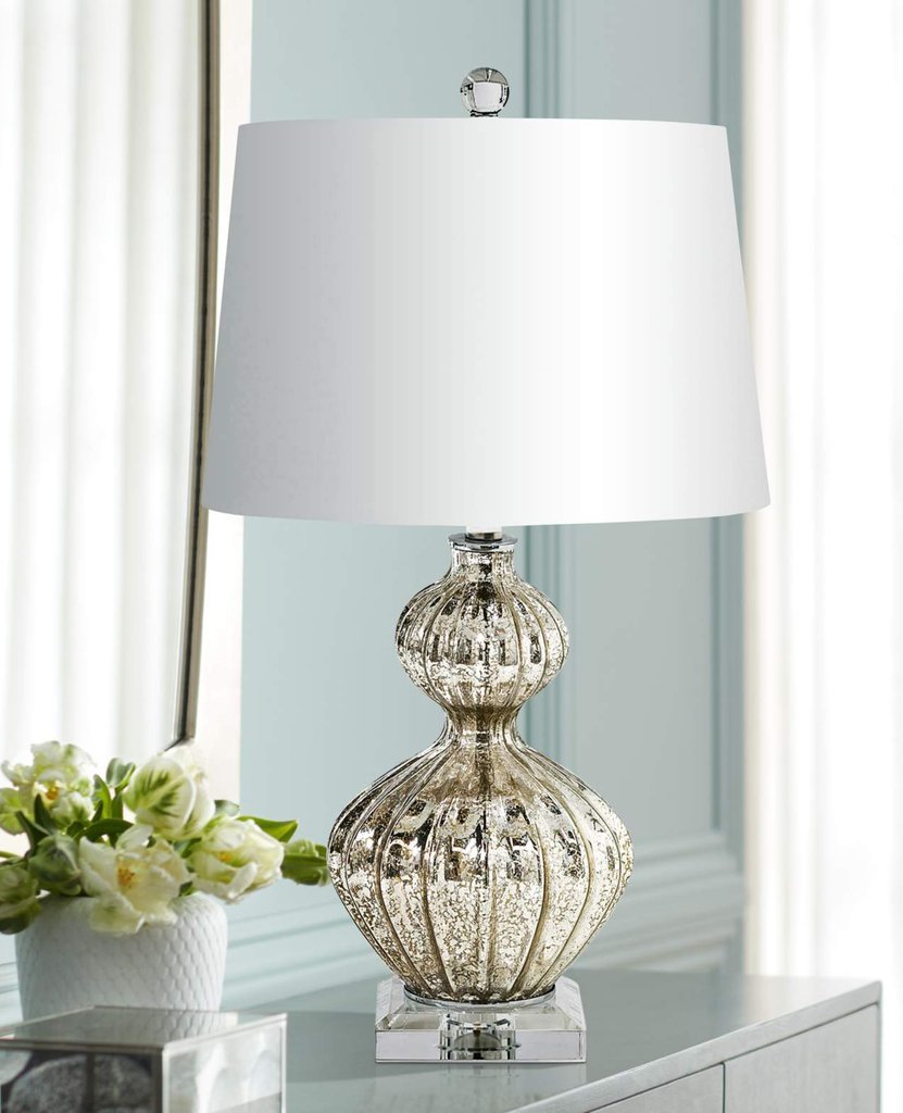 Настольная лампа MYRA RIPPLE от фабрики LOUVREHOME (Китай) — элегантное решение для современного интерьера. Рифленый силуэт в ртутном цвете создает эффектную игру света, а прозрачное основание и белый абажур добавляют легкости и стиля.