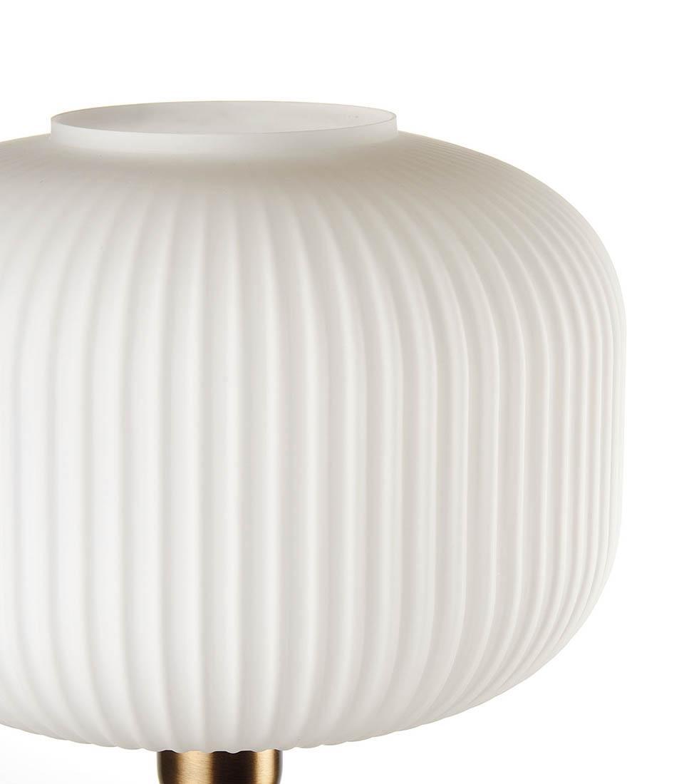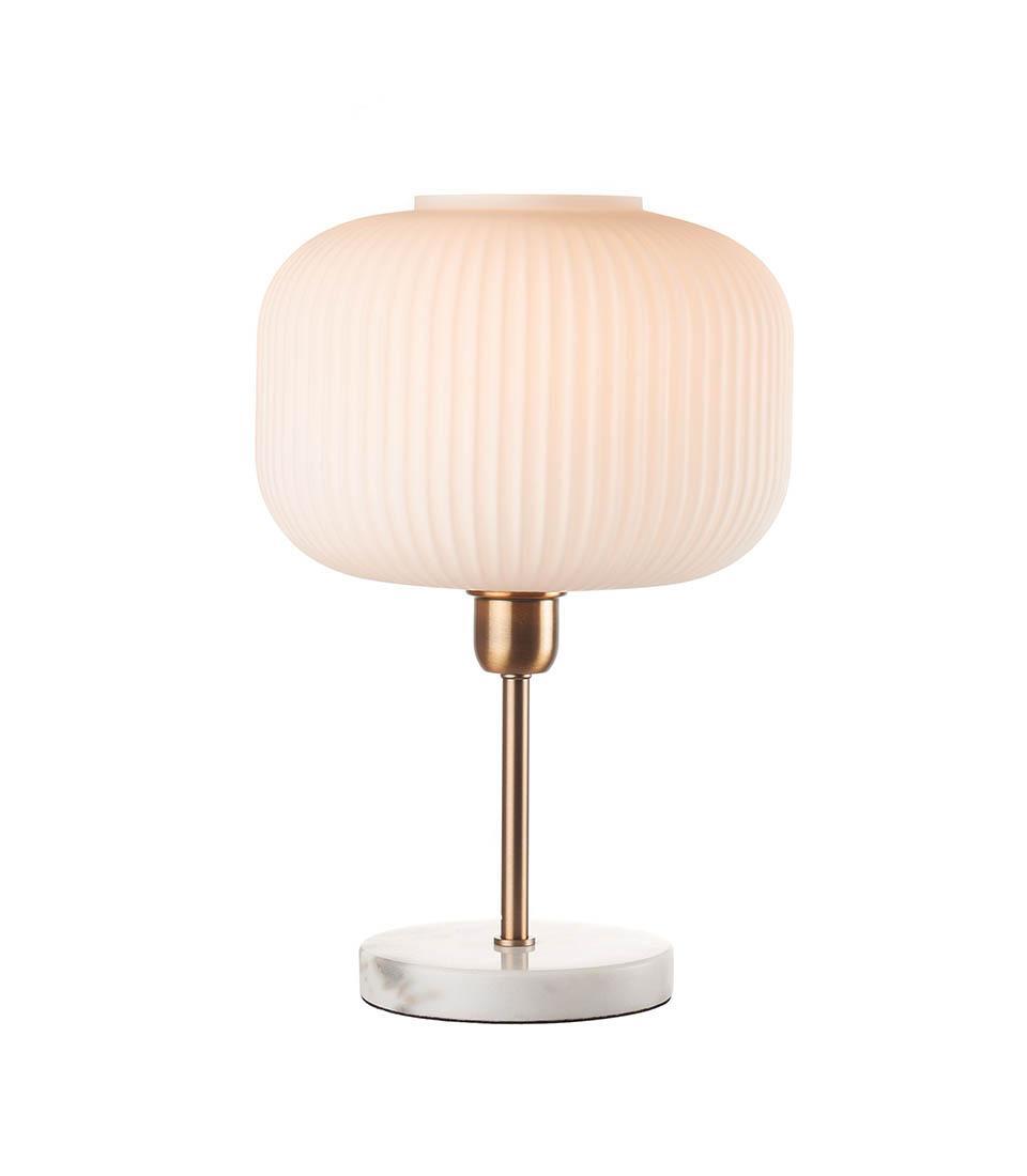 Настольная лампа RESEARCH выполнена из обработанного стекла, что придаёт ей лёгкость и прозрачность. Бронзовая металлическая ножка, с её изысканным оформлением, и мраморное основание создают гармоничное сочетание, которое будет прекрасно смотреться в любом интерьере — от классического до современного. Размеры лампы: Ø30x46h см, что делает её идеальной для рабочих столов, тумб или уютных уголков.
