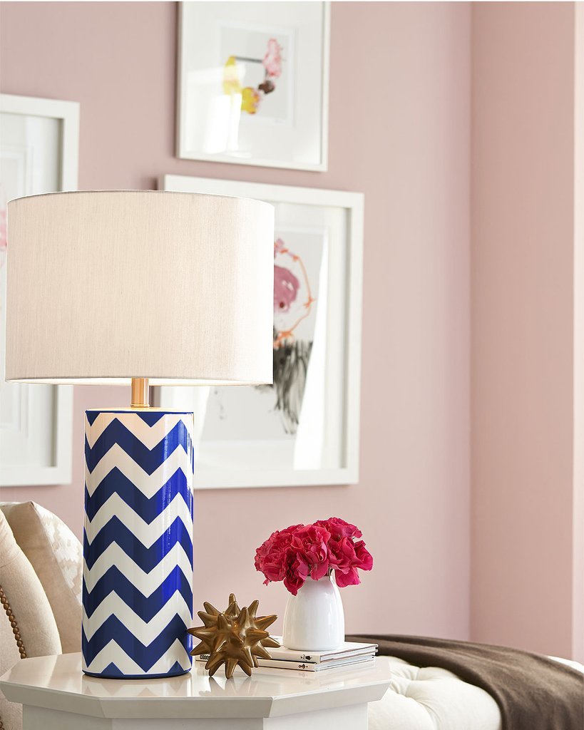 Настольная лампа VANESSA от фабрики LOUVREHOME (Китай) – стильное решение для современного интерьера. Керамическое основание с эффектными шевронными узорами в синих тонах создает смелый акцент, а круглый акриловый абажур мягко рассеивает свет.