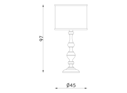 Диаметр абажура – 45 см, высота – 97 см, предусмотрена лампа с цоколем E27 (до 77 Вт). Также в коллекции доступны подвесные, настенные светильники и торшеры.