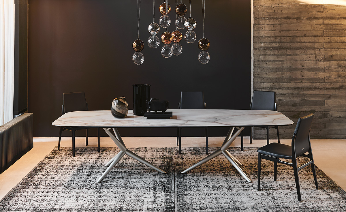 Обеденный стол Atlantis Keramik воплощает в себе гармонию форм и материалов. Его элегантная основа изготовлена из стали, доступной в различных оттенках: гофрированный титан (GFM11), бронза (GFM18), графит (GFM69) и черный (GFM73). Ножки стола, выполненные в черном хроме (06), добавляют особый шарм и стиль, подчеркивая общую концепцию премиум-класса. Топ стола выполнен из высококачественной керамики и доступен в множестве великолепных цветов, таких как Calacatta, Alabastro, Ardesia и многие другие.
