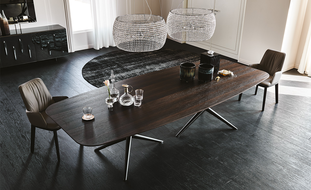 Итальянский обеденный стол Atlantis Wood от Cattelan Italia — это слияние стиля и функциональности. Стол имеет прочную стальную базу с отделкой в гофрированном титане, бронзе или графите, что придает ему современный вид. Доступен в нескольких версиях с уникальными формами: скошенные, неровные или закругленные края из ореха Canaletto и различных сортов дуба.