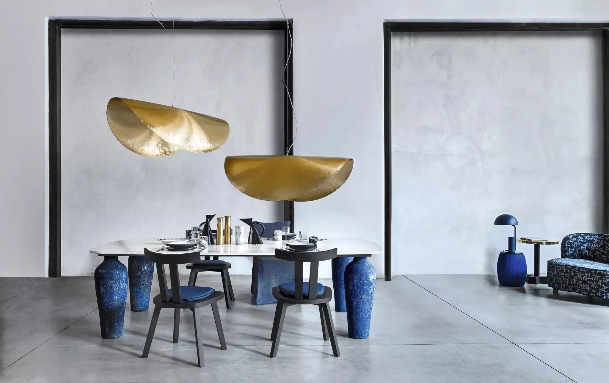 Итальянский обеденный стол Collection Moon 32/33 от фабрики Gervasoni — воплощение элегантности и ручного мастерства. Основание в форме амфоры выполнено из синей керамики с эффектом неровной поверхности, что подчеркивает уникальность каждой детали. Столешница из белого каррарского мрамора придает столу благородный и современный вид. Идеальное сочетание традиционных итальянских материалов с современным дизайном делает этот стол центральным элементом интерьера.