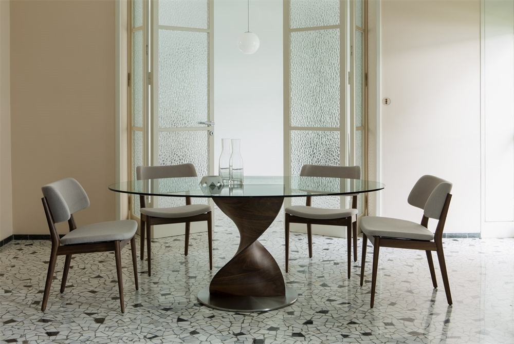 Обеденный стол Elika выделяется своим авторским дизайном, в котором гармонично сочетаются современные линии и элементы классического стиля. Элегантное основание, выполненное из структурного технополимера, придает прочность и устойчивость, в то время как массив ореха каналетта или ясеня добавляет теплоту и натуральность. Столешница из закаленного стекла толщиной 12 мм не только привлекает взгляд, но и практична в использовании, легко очищается и устойчива к повреждениям.