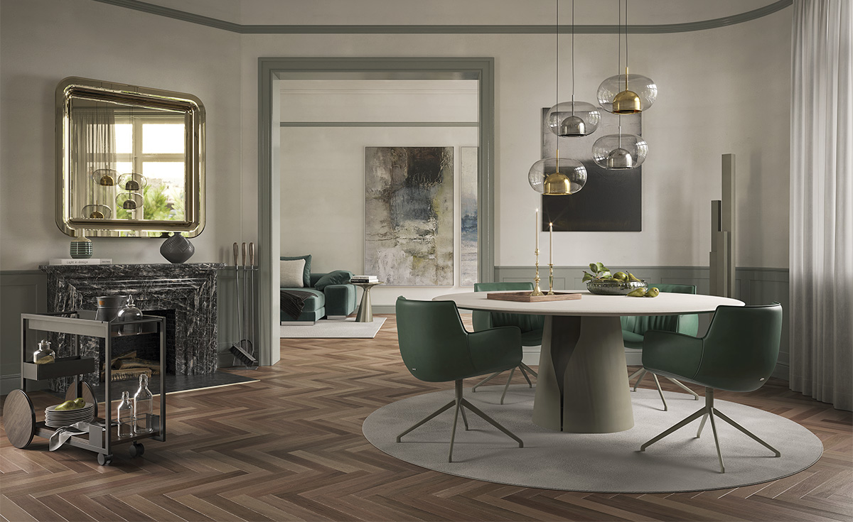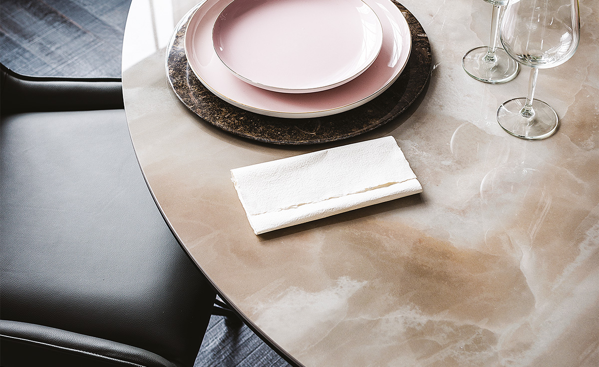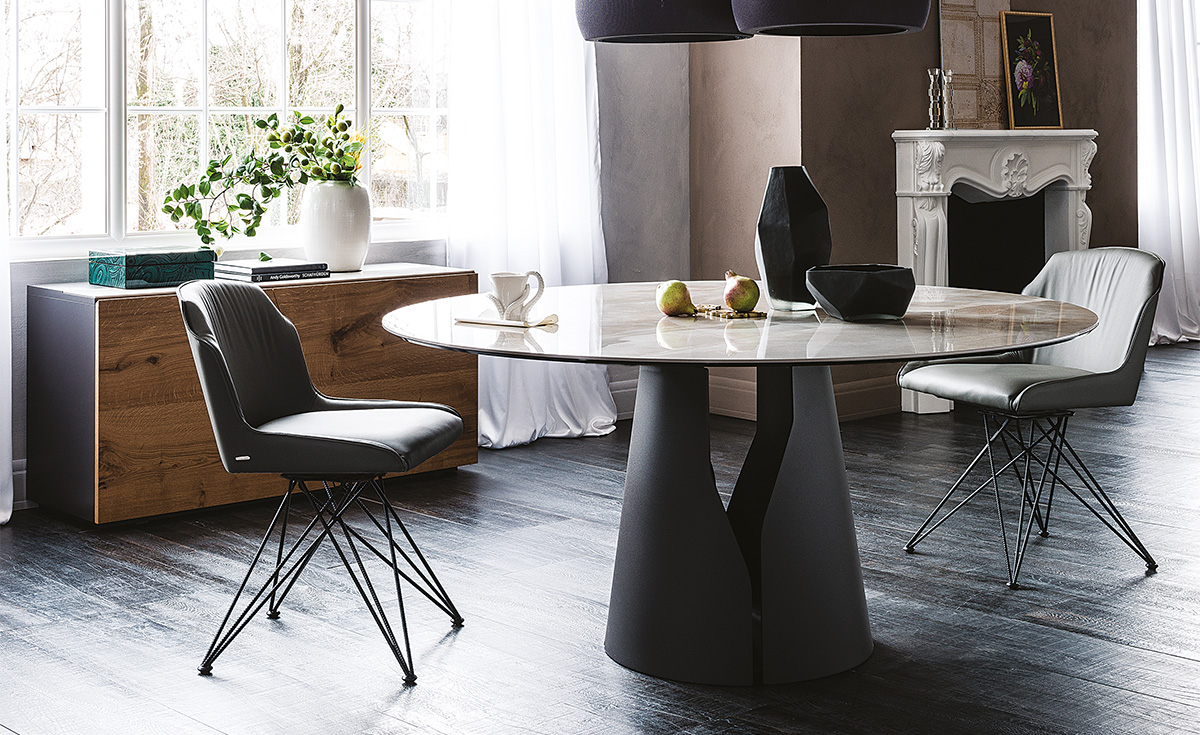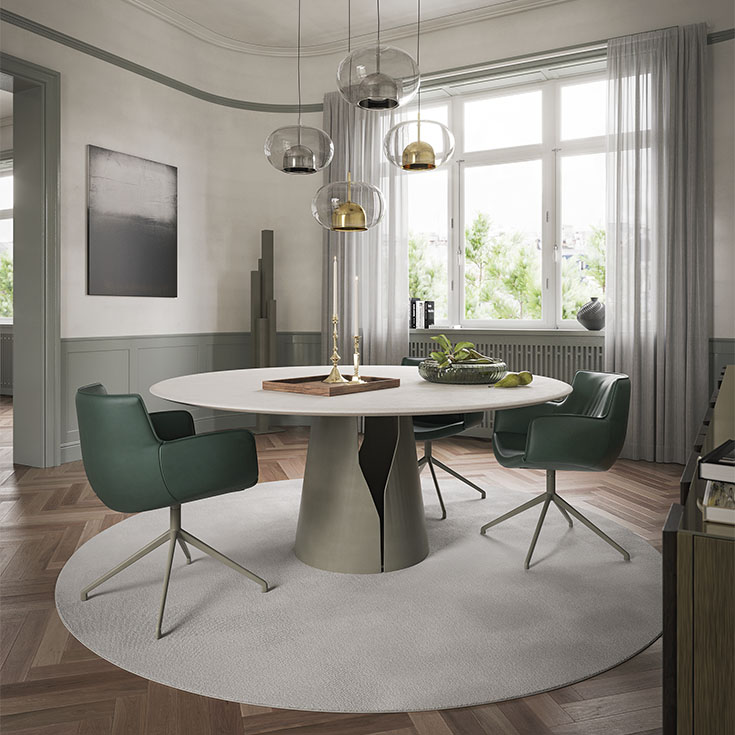 Дизайн Giano Keramik сочетает в себе классическую элегантность и современные тенденции. Чистые линии, благородные пропорции и тщательно продуманные детали делают этот стол идеальным выбором для элитных интерьеров. Основание из матового металла с эффектом «песчаной текстуры» контрастирует с гладкой керамической столешницей, создавая визуальную глубину и динамику. Такой дизайн не просто украшает пространство — он задает тон всему интерьеру.