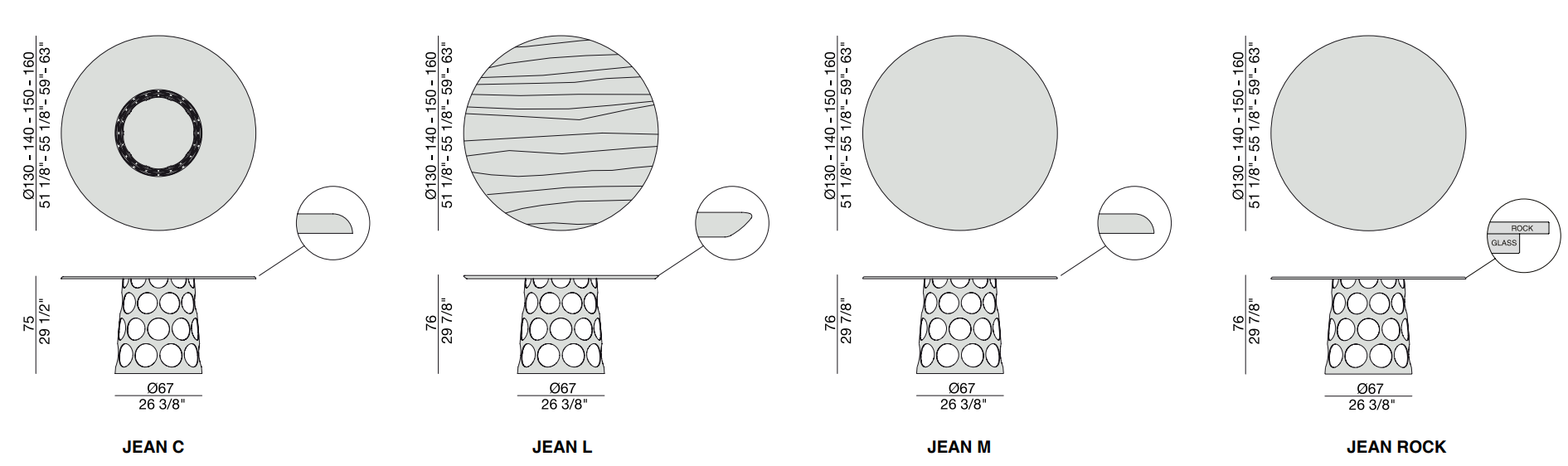 Стол Jean отличается современным и элегантным дизайном, который идеально вписывается в любые стилистические решения. Его прочное металлическое основание обеспечивает надежность и долговечность, в то время как столешница, выполненная из высококачественного хрусталя, мрамора или массивного ореха каналетта толщиной 15 мм, добавляет нотку роскоши и утонченности. Выберите между круглой или цилиндрической формой, чтобы подчеркнуть уникальность вашего пространства.