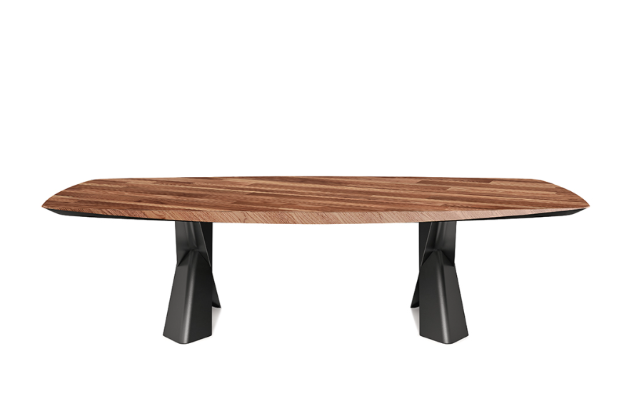 Обеденный стол Mad Max Wood от Cattelan Italia – воплощение итальянского дизайна и мастерства. Изготовлен из высококачественных материалов: основание доступно в титане, бронзе, графите или лакированной стали, а столешница – в различных вариантах древесины, включая орех Каналетто, дуб и вяз.