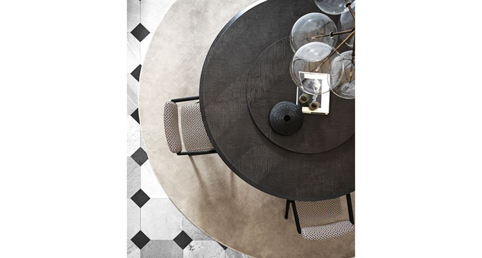 Стол Manto выделяется своей уникальной столешницей, выполненной из благородного дерева цвета Walnut Frisé. Инкрустация в стиле елочки с черным скосом придает ему особый шарм и характер. Это идеальное решение для тех, кто ценит изысканность и стиль в каждой детали. Габаритные размеры стола предлагают два варианта: Ø150 x 73 см и Ø180 x 73 см, что позволяет выбрать оптимальный размер для вашего интерьера.