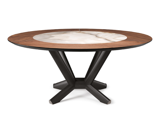 Итальянский обеденный стол Planer Ker-Wood Round от Cattelan Italia сочетает элегантность и функциональность. Основание выполнено из прочной стали с покрытием в различных оттенках: гофрированный титан, бронза, графит или черный. Столешница предлагается из натурального ореха или обожженного дуба с керамической вставкой под мрамор в 11 вариантах расцветок, включая Calacatta, Portoro и Emperador. Дополнительная версия с вращающейся керамической вставкой («Т») делает стол еще более практичным. Итальянское качество и продуманный дизайн делают эту модель идеальным выбором для современной столовой.