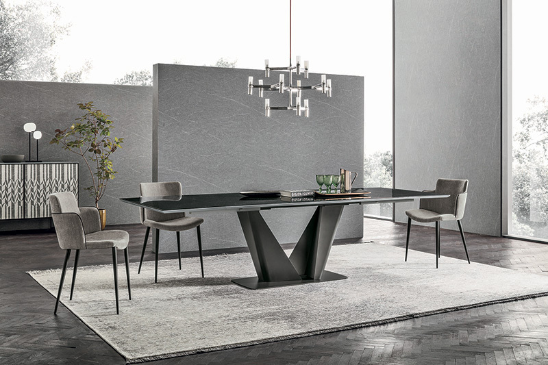 Стол SILVER одинаково эффектно смотрится в окружении классических стульев с бархатной обивкой и современных minimalist-сидений, демонстрируя свою универсальность.
