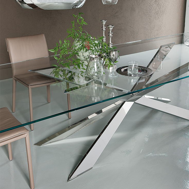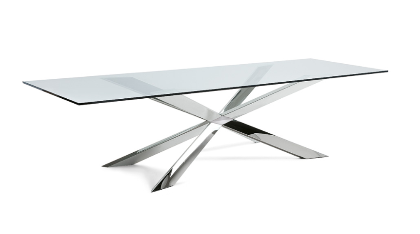 Обеденный стол Spyder от итальянской фабрики Cattelan Italia – воплощение элегантности и функциональности. Основание выполнено из высококачественной стали с матовым покрытием, нержавеющей стали или благородных металлов (сатинированная бронза, титан). Столешница – из прозрачного или сверхпрозрачного стекла толщиной 15 мм, что придает столу легкость и современный вид.