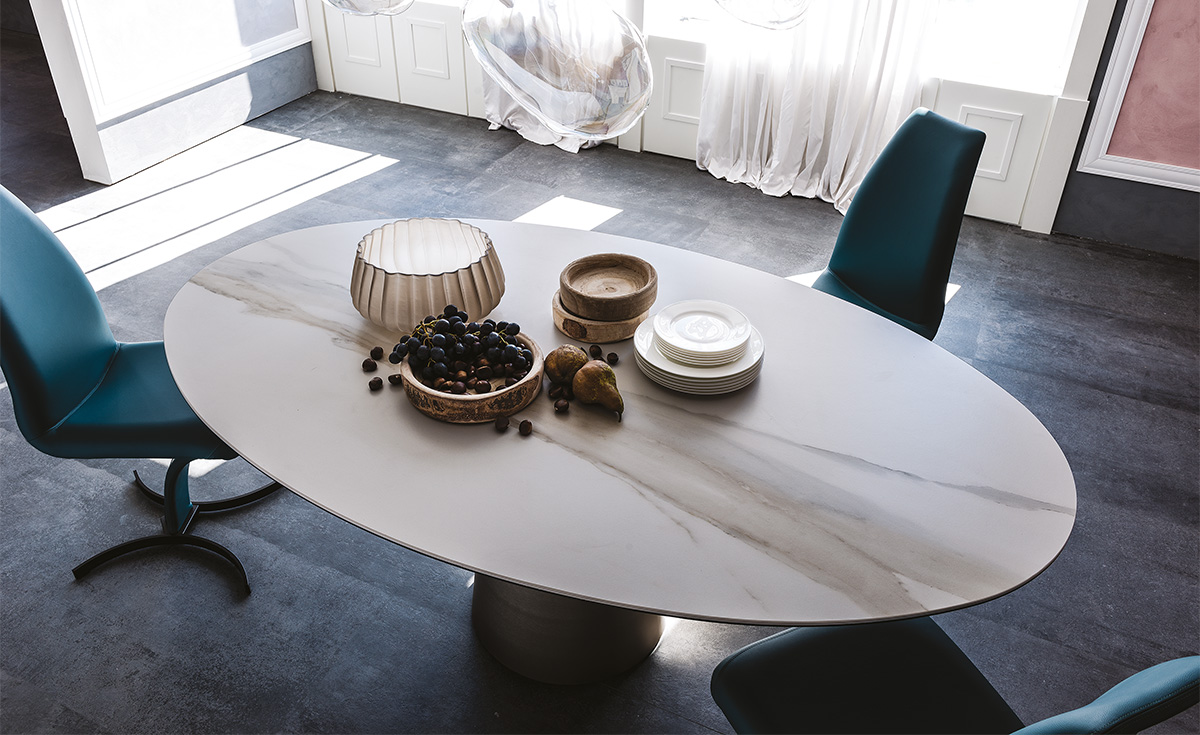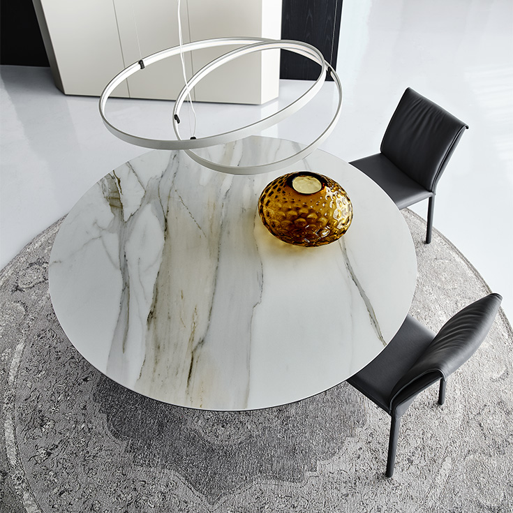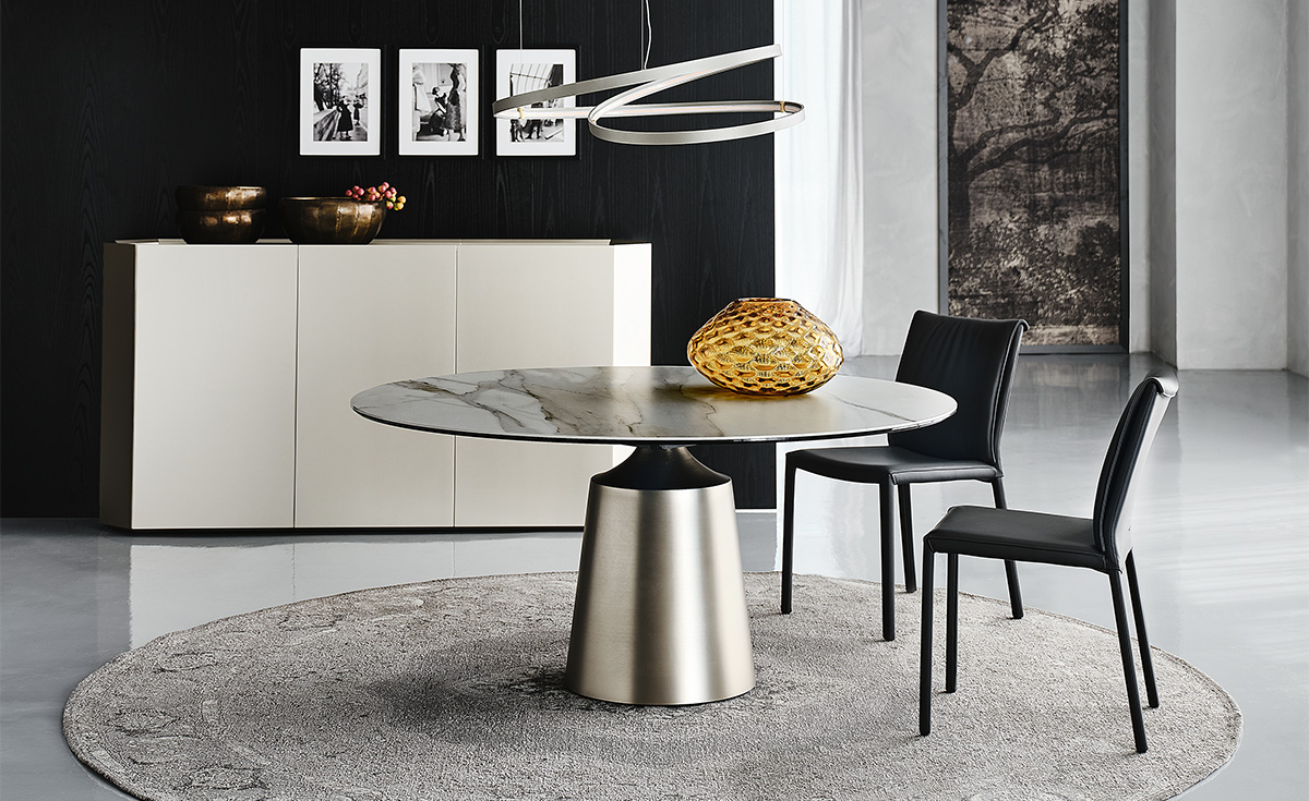 Обеденный стол Yoda Keramik от Cattelan Italia — это воплощение итальянского мастерства и элегантности. Изготовленный в Италии, стол оснащен прочной стальной базой, доступной в нескольких изысканных цветах: гофрированном графите, белом и черном. Его верх из керамики под мрамор предлагает широкий выбор отделок, включая матовые и глянцевые варианты, такие как Golden Calacatta и Portoro.