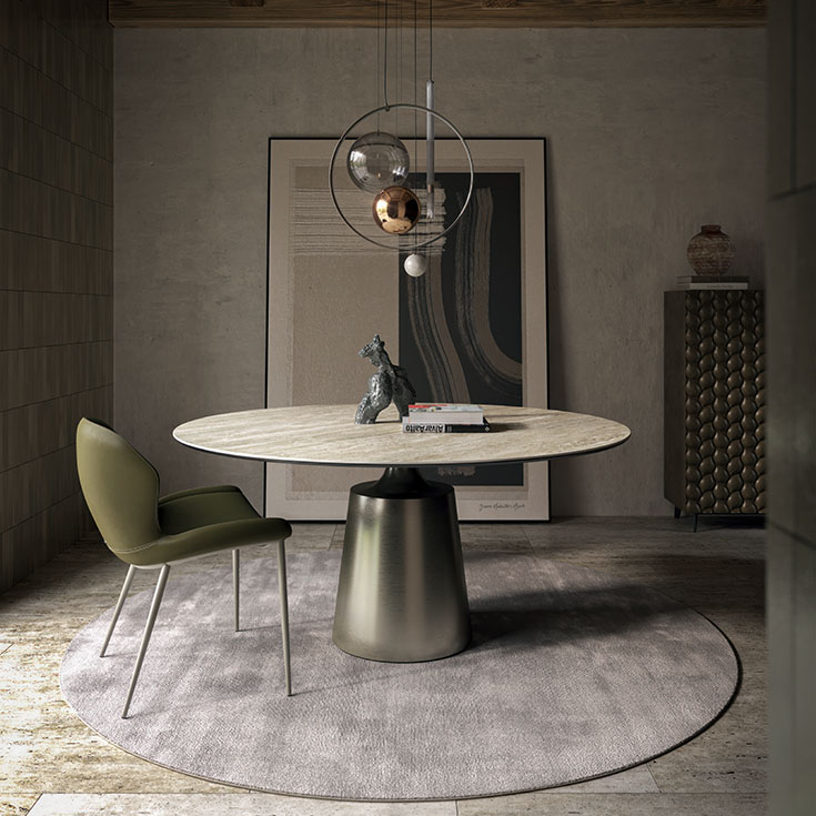 Обеденный стол Yoda Keramik изготовлен из благородных и прочных материалов. Использование высококачественной стали и керамики гарантирует долговечность и надежность. Ручная работа придаёт уникальность каждой детали, и даже возможные разводы на покрытии из сатинированного титана — это свидетельство исключительного мастерства мастеров. Каждый стол — это индивидуальный шедевр, который добавляет вашему интерьеру ноты эксклюзивности.