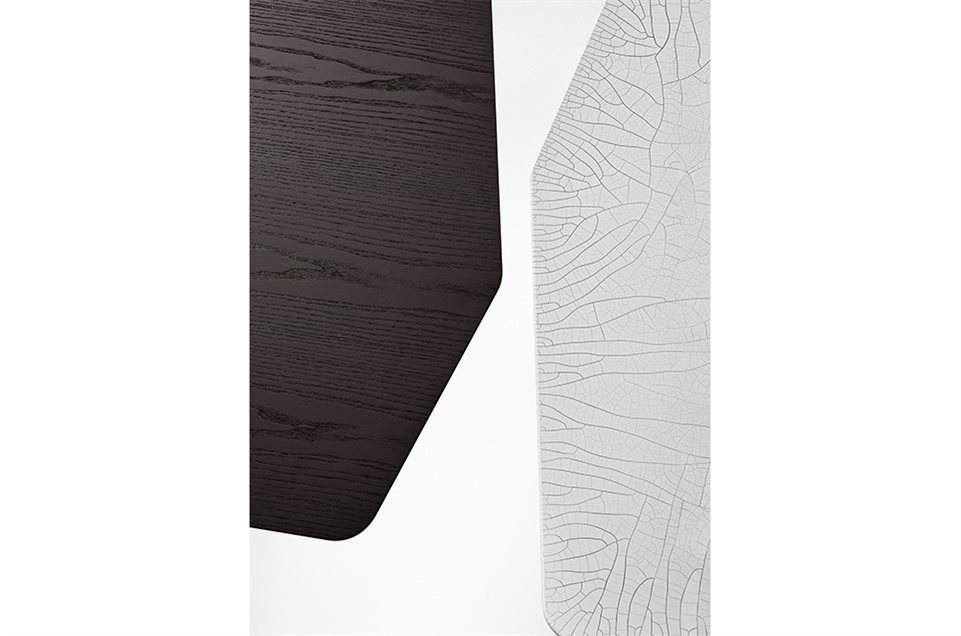 Обеденный стол Zen предлагает идеальное сочетание современного стиля и функциональности. Его столешница выполнена из матового ясеня, покрытого лаком черного цвета, что придаёт изделию элегантность и утонченность. Доступна версия со стеклянной столешницей, декорированной вручную с отделкой Craquelé, что добавляет нотку эксклюзивности и художественной выразительности. Таким образом, вы можете выбрать тот вариант, который лучше всего впишется в ваш интерьер.