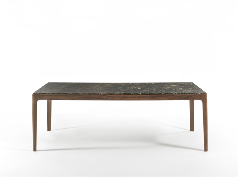 Элегантный прямоугольный стол выполнен из массива ореха каналетта, что придает ему прочность и стиль. Столешница доступна в вариантах из мрамора или травленого стекла с обратной краской, что позволяет легко вписать изделие в любой интерьер.