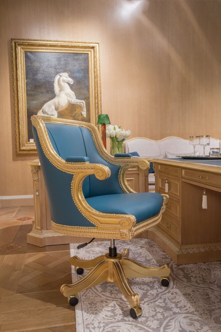 Представьте, как мягкие линии кресла гармонируют с деревянной отделкой кабинета, а благородная фактура обивки притягивает восхищенные взгляды.