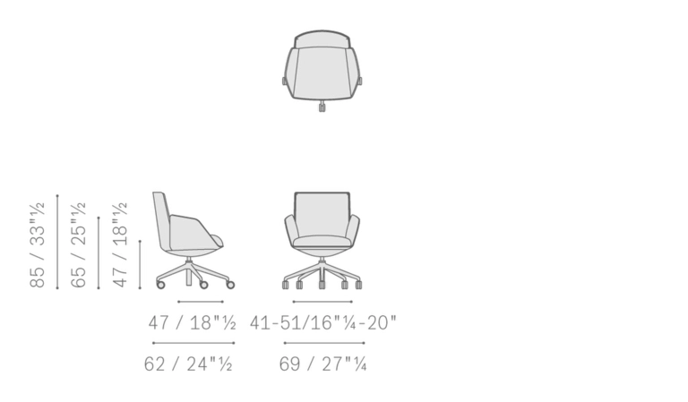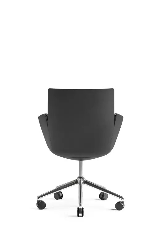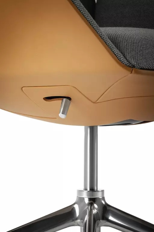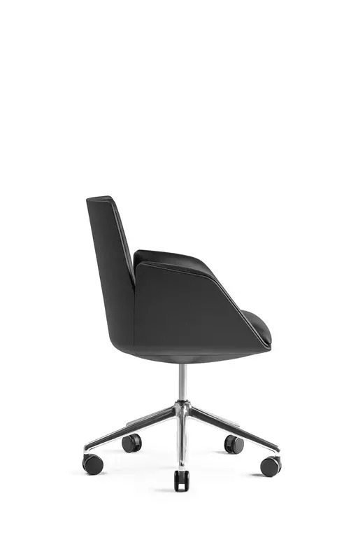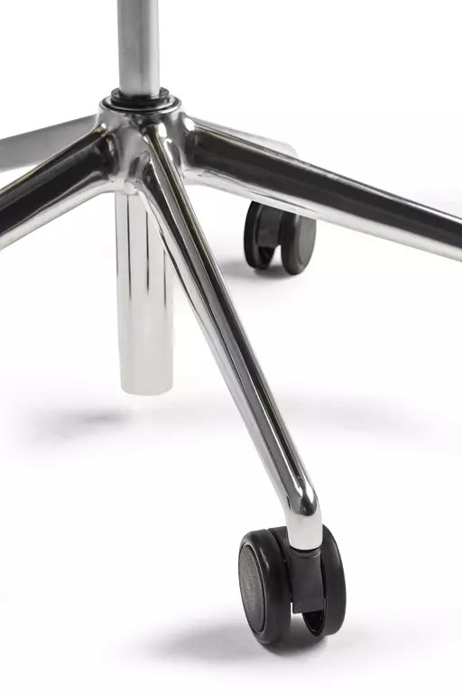 Основание кресла может быть выполнено из полированного алюминия или черного лака, что добавляет дополнительный шарм и стиль. Пять спиц основания и газовая пружина обеспечивают стабильность и легкость регулировки высоты. Ролики с автоматическим торможением делают кресло удобным для перемещения и безопасным для использования на любых покрытиях.