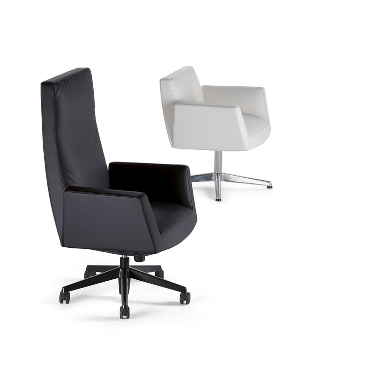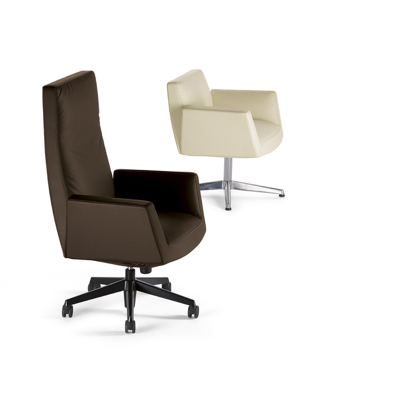 Chancellor Visitor — это идеальное сочетание стиля и удобства. Его продуманный дизайн предлагает сложный поворотный механизм, который обеспечивает легкость вращения и возвращения в исходное положение. Четырехспицевое основание из прочной трубчатой стали, доступное в хромированном или темно-сером лаке, добавляет креслу современный и респектабельный вид. Подлокотники, обитые кожей Pelle Frau®, придают креслу нотки утонченности и комфорта, ведь они отделаны полированным алюминием или окрашены в цвет основания.