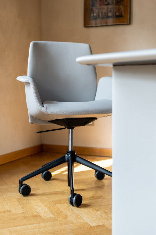 Кресло Downtown Conference выделяется своим элегантным и неподвластным времени дизайном. Каждая деталь продумана до мелочей, что позволяет ему гармонично вписаться в любой современный интерьер. Изысканная форма и плавные линии делают это кресло не только функциональным, но и стильным акцентом в вашем пространстве. Вы можете выбрать обивку из высококачественной кожи Pelle Frau® или изысканной ткани, что позволит вам персонализировать его в соответствии с вашим стилем.