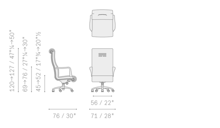 Кресло Forum отличается современными линиями и минималистичным стилем, что позволяет ему органично вписаться в любой интерьер. Пятиспицевое основание из полированного или черного лакированного алюминия обеспечивает надежность и устойчивость. Сиденья, поворачивающиеся на 360°, и регулируемая высота делают его не только стильным, но и функциональным. Обивка из кожи Pelle Frau® добавляет нотки роскоши, а стеганое одеяло на сиденье и спинке в версиях President и Executive демонстрирует исключительное мастерство итальянских дизайнеров.