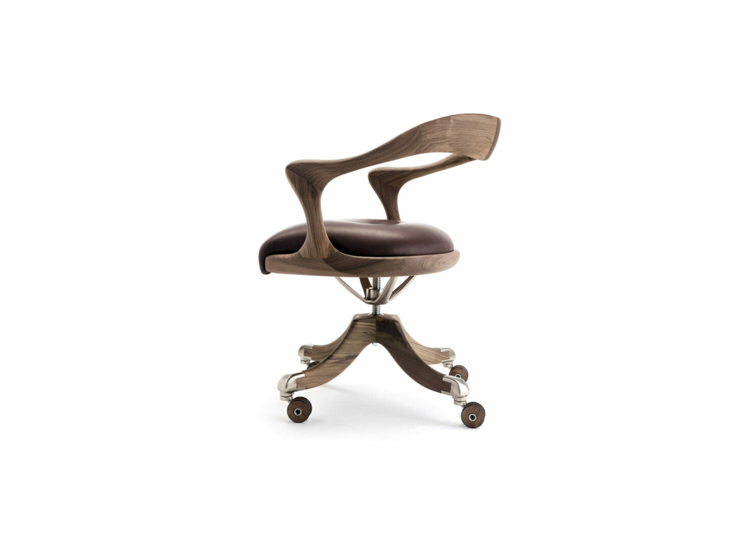 Офисное кресло Marlowe, разработанное выдающимся дизайнером Роберто Лаццерони, является истинным произведением искусства. Изготовленное в Италии, это кресло сочетает в себе высококачественные материалы, включая цельный американский грецкий орех и мягкую тополиную фанеру, покрытую кожей из коллекции Ceccotti Collezioni.